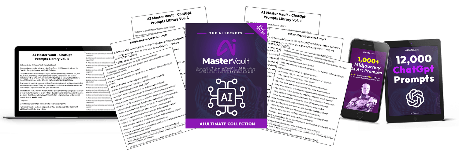 12,000 Unique ChatGpt Prompts, Midjourney Art Prompts, 600+ AI Tips, Secret Guides & 8 Special Bonuses
